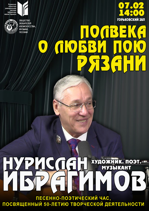 7 февраля в клубе «ОЛИМП» состоится песенно-поэтический час, посвященный 50-летию творческой деятельности Нурислана Ибрагимова.