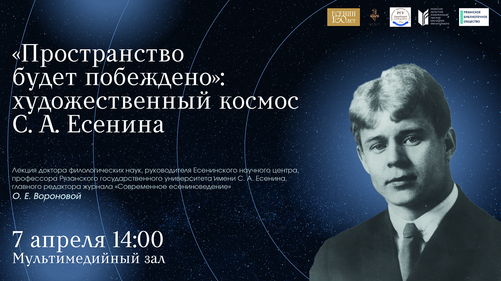 7 апреля 2026 года состоится лекция профессора, доктора филологических наук О.Е. Вороновой «”Пространство будет побеждено”: художественный космос С. А. Есенина», включенная в программу мероприятий Всероссийской космической недели, отмечаемой в этом году с 6 по 12 апреля.