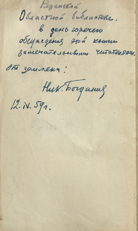 Электронный вариант статьи: Богданов Николай Владимирович : (к 100-летию со дня рождения писателя) // Календарь знаменательных и памятных дат на 2006 год. Рязань, 2005. С. 61-63.