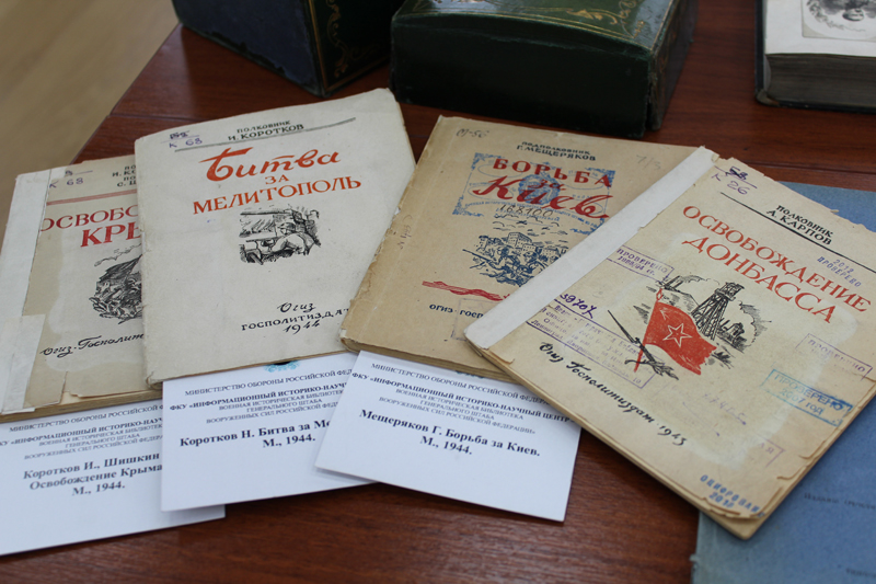 На книжной выставке было представлено более 100 раритетных экземпляров книг, посвященных ратному прошлому России, военной истории Крыма, деятельности выдающегося полководца М. Д. Скобелева.