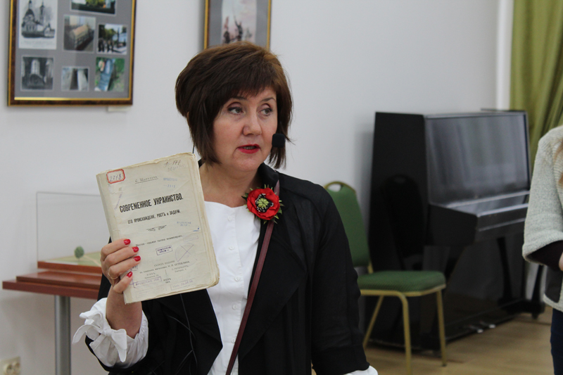С интересом посетители выставки слушали захватывающий рассказ Ирины Кузнецовой, руководителя федерального казенного учреждения «Информационный историко-научный центр – Военная историческая библиотека Генерального штаба Вооруженных Сил Российской Федерации», об экспонируемых книжных сокровищах.