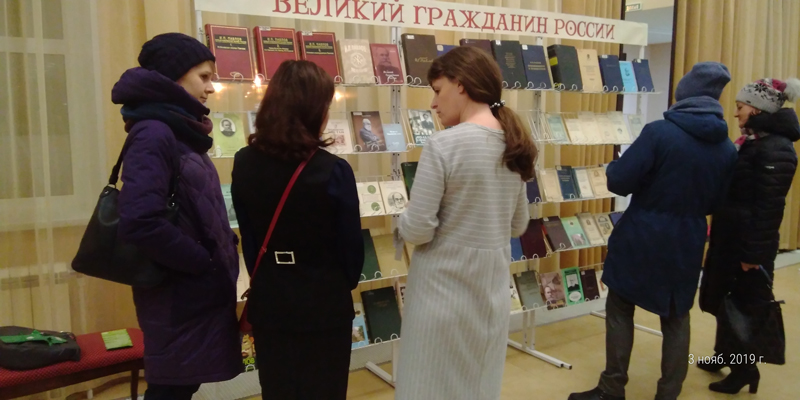Библиотекари к этому мероприятию подготовили книжную экспозицию «Великий гражданин России». На выставке были представлены книги (в том числе прижизненные издания), рассказывающие о рязанском периоде жизни выдающегося ученого, его учебе в Санкт-Петербургском университете, его научной деятельности.