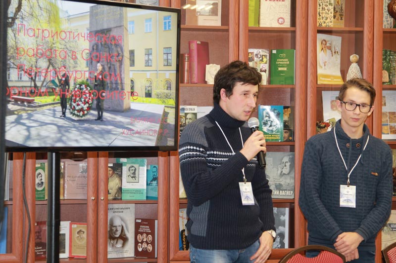 Участники секции с интересом выслушали доклад студентов Санкт-Петербургского горного университета А. С. Елихина и Р.Р. Хусаинова «Опыт работы по патриотическому воспитанию студентов на базе Санкт-Петербургского горного университета».