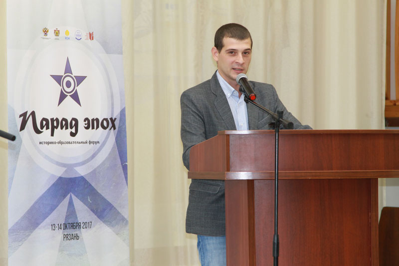 И.И. Митрофанов, консультант отдела по работе с национальными, религиозными объединениями и казачеством министерства по делам территориальных образований и общественных объединений Рязанской области, член регионального отделения Российского военно-исторического общества выступил с докладом «Деятельность Рязанского регионального отделения Российского военно-исторического общества по поддержке проектов, направленных на патриотическое воспитание населения Рязанской области».