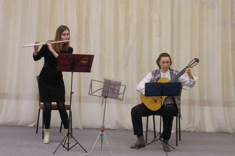 Народные песни Рязанской области прозвучали в исполнении фольклорного ансамбля «Зоряночка» (руководитель – Светлана Трушина). Трио в составе Елены Пронюшкиной, Елены Романовой, Татьяны Цыганковой исполнило духовный напев «Достойно есть», отдав дань уважения регентскому прошлому хормейстера. Музыкальные композиции прозвучали в дуэтном исполнении Екатерины Леснянской (флейта) и Галины Гришуновой (гитара), в том числе знаменитые «Дороги» А. Новикова, другого нашего известного композитора-земляка. Полина Белянская (преподаватель – Елена Романова, концертмейстер – Людмила Кучеренко) исполнила русские классические романсы и русскую народную песню в обработке Александрова «У зори-то, у зореньки» и другие произведения.