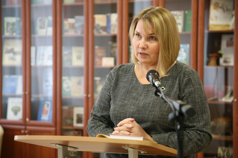 Директор Белгородского литературного музея И. А. Климова рассказала о вкладе сотрудников музея в реализацию проекта издания книги «Славутинский и его современники», о деятельности музея по сохранению и популяризации творческого наследия писателей, чьи жизнь и творчество связаны с Белгородчиной.