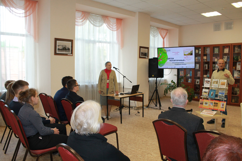 В рамках межрегионального фестиваля национальной книги «Читающий мир» состоялась презентация книги В. А. Семина «Цветок неповторимый. Секретная биография слепой поэтессы», вышедшей в 2019 году в рязанском издательстве «Старт». Автор - член Союза писателей России, историк-краевед, литературовед, автор книжной серии «Легенды Рязанского края».