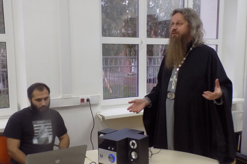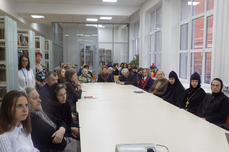 В рамках фестиваля «Читающий мир» в зале клубной работы состоялась встреча с кандидатом исторических наук, заведующим кафедрой теологии Рязанского государственного университета имени С. А. Есенина, настоятелем Пронского Спасо-Преображенского мужского монастыря игуменом Лукой (Степановым).