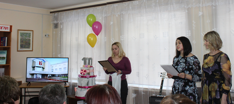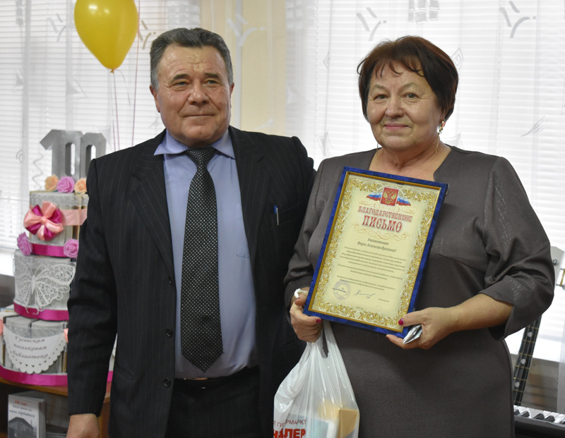 Тепло и сердечно поздравили библиотеку с юбилеем заведующая отделом РОУНБ им. Горького Галина Александровна Долотина и секретарь Рязанского библиотечного общества Надежда Сергеевна Выропаева. Они вручили Приветственные адреса и преподнесли в дар книги и сертификат на приобретение литературы.