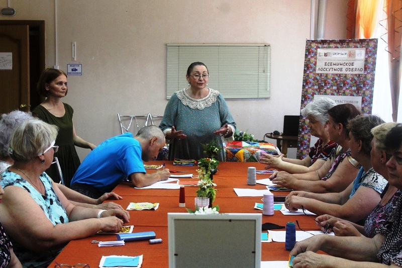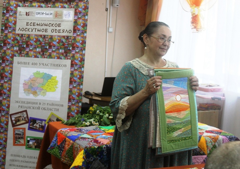 Рукодельницы с воодушевлением шили и подписывали лоскутные квадратики, чтобы потом собрать ситцевые кусочки в единый творческий покров, объединяющий поклонников поэзии Сергея Александровича Есенина.