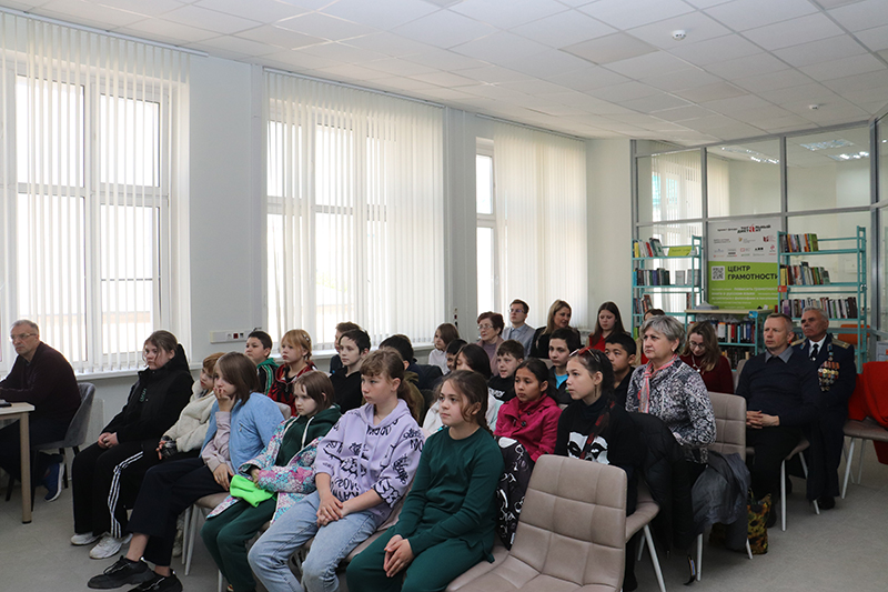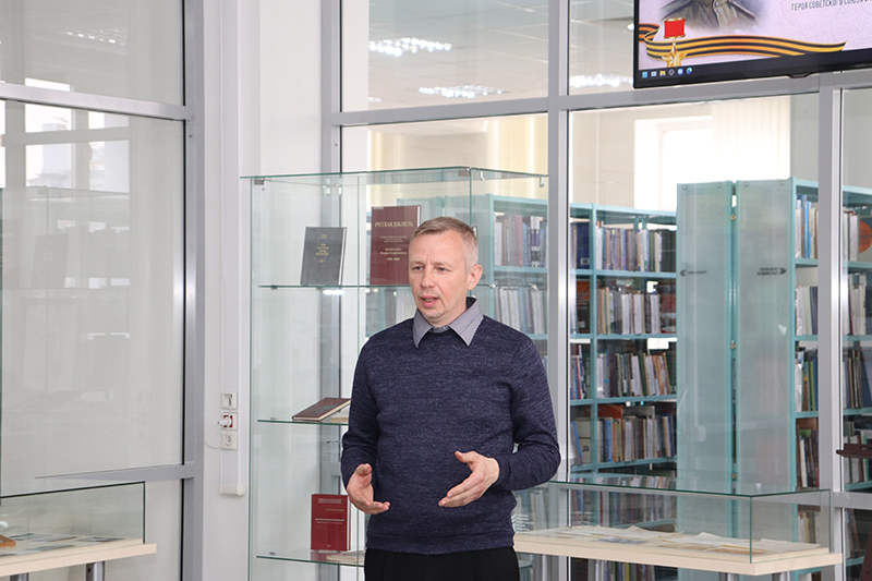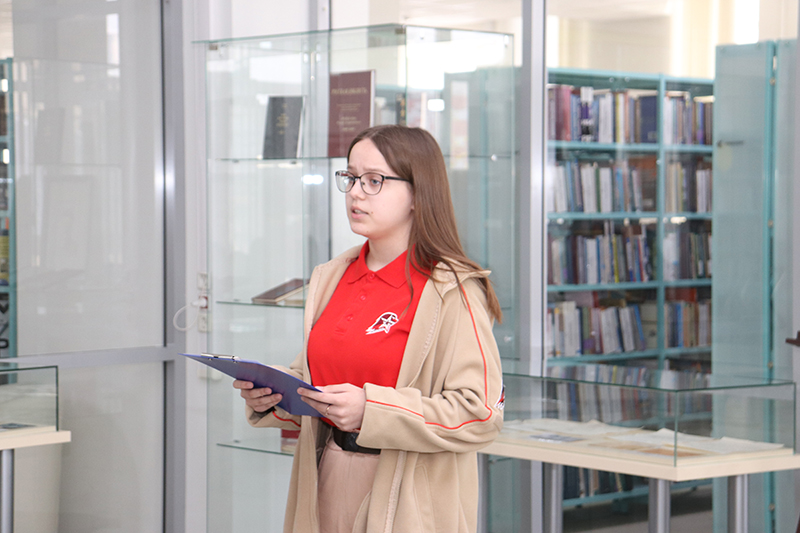 С приветствием словом выступила заместитель директора библиотеки по социокультурной деятельности и связям с общественностью Ксения Александровна Чулкова. Она поблагодарила музей школы-интерната имени Федора Андриановича Полетаева за предоставленные экспонаты, а учащихся и педагогов – за активную жизненную позицию и готовность к сотрудничеству в деле патриотического воспитания молодежи. Ксения Александровна выразила надежду на продолжение плодотворного взаимодействия школы-интерната и библиотеки имени Горького.