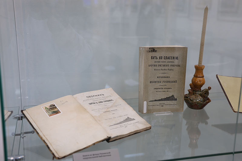 Директор Рязанской епархиальной библиотеки Наталия Леонидовна Моисеева представила на выставке прижизненные издания святителя. Она отметила, что, несмотря на отсутствие иллюстраций, книги Феофана Затворника ценны тем, что он говорит с читателем на языке души и сердца.