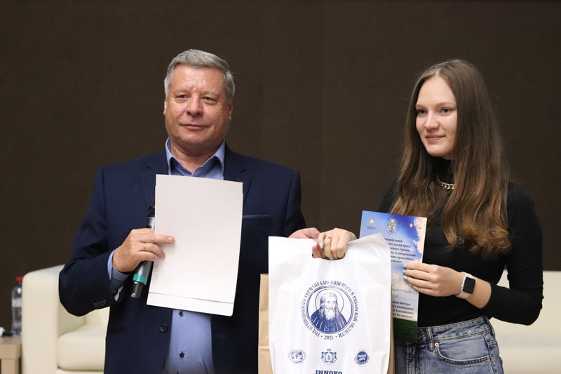 По завершении показа состоялось награждение студентов - призеров открытого конкурса научно-исследовательских работ, посвященного служению преподобных Германа Аляскинского, Серафима Саровского и Назария Валаамского.