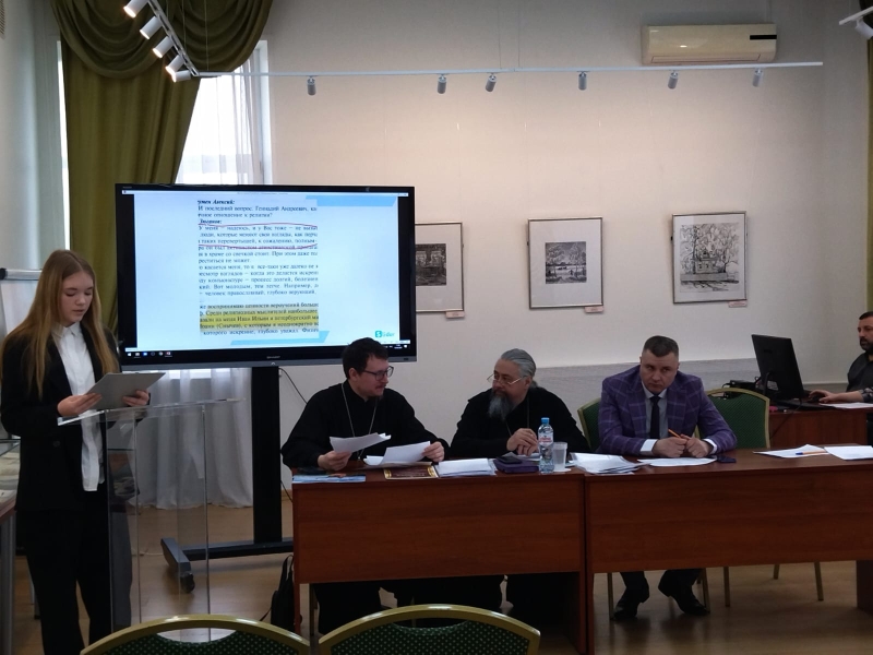 Студент Егор Лестев из Саратова раскрыл тему «Духовная реабилитация: к вопросу о новой системе национального воспитания в творчестве И.А. Ильина», поднимая такие понятия, как воспитание духовной личности, выбор духовного пути, служение Божьему делу на земле, которые опираются на Евангельскую любовь к ближнему.
