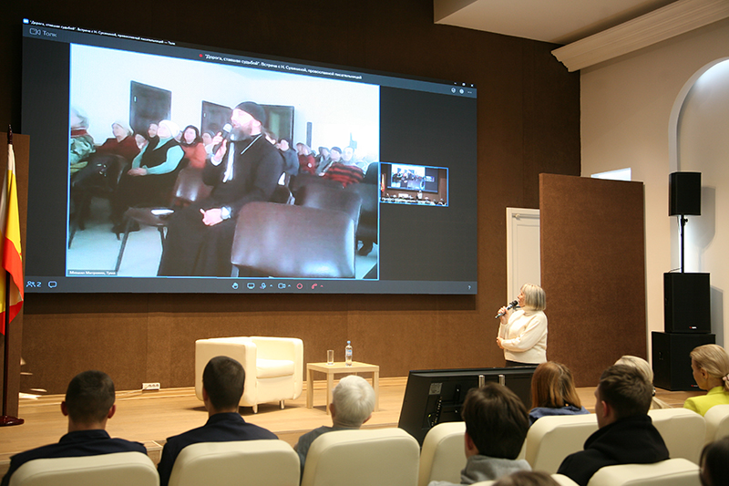 В беседе с Наталией Евгеньевной приняли участие многочисленные читатели ее книг, работники библиотеки, студенты Рязанского железнодорожного колледжа, Рязанского государственного университета имени С.А. Есенина, курсанты Рязанского гвардейского высшего воздушно-десантного командного училища имени генерала армии В.Ф. Маргелова и Академии права и управления ФСИН России. Горьковский зал библиотеки был переполнен. К разговору с писателем онлайн подключились настоятель храма в честь иконы Святой Живоначальной Троицы пос. Тумы Клепиковского района отец Михаил и несколько десятков прихожан храма.