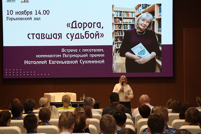 10 ноября в Рязанской областной библиотеке имени Горького в рамках православной книжной выставки-форума «Радость Слова» состоялась встреча с журналистом, писателем Наталией Евгеньевной Сухининой.