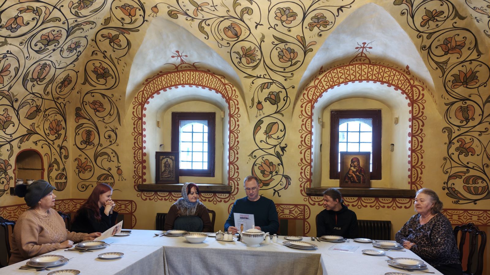 В музее гости посидели в трапезной, поднялись по винтовой лестнице на второй этаж и осмотрели залы с предметами монашеского быта и обстановкой монашеской кельи. Также увидели вещи, сделанные монахами. Детям особенно понравилось то, что все вещи можно потрогать руками.