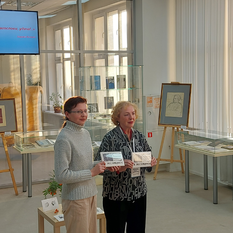 Автор проекта – главный библиотекарь отдела хранения «Горьковки» Ирина Леонова – рассказала об экслибрисах, размещенных в комплекте, и об их авторах, о контактах с наследниками художников, коллекционерами и учреждениями культуры, предоставившими книжные знаки для публикации. Мероприятие украсили и согрели теплом есенинских строк песни в аудиозаписи Государственного Рязанского русского народного хора имени Евгения Попова.