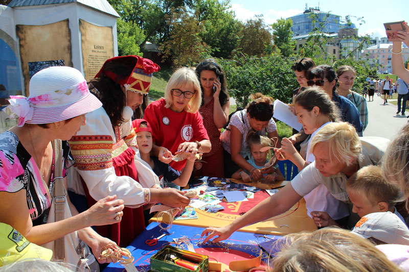 На площадке «Посольства Новгородской области», которую, как мы помним, представляет Великий Новгород, отдел формирования фондов предложил любителям истории продемонстрировать свои знания в викторине «Великий Новгород – колыбель Российского государства». Из восьми вопросов пять касались важнейших дат. Победитель и участники получили сувениры с символикой города. В рамках мастер-класса гости «Посольства» своими руками из соломки, лоскутов ткани, тесьмы, ленточек изготовили куклу-стригушку или танцующую куклу, которая символизировала у славянских народов богатый урожай и была особенно популярна у детей.