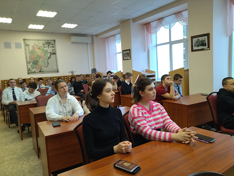 24 января в библиотеке имени Горького состоялась встреча юных краеведов, членов клуба «Наследники», с заведующим сектором «Книга Памяти Рязанской области» отдела молодежных проектов и волонтерской деятельности РОУНБ Дмитрием Андреевичем Винокуровым.