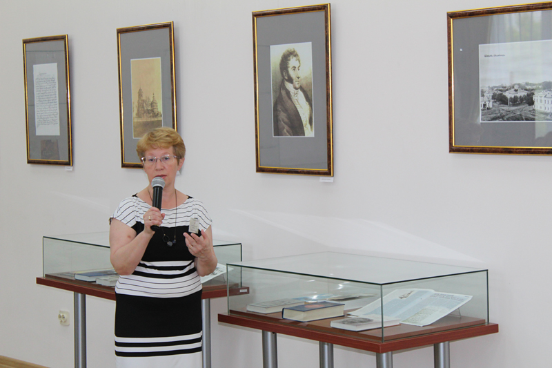 Ученый секретарь библиотеки Елена Епишина провела обзор выставки, на которой представлены труды Н.Ф. Федорова и литература о нем из фондов библиотеки, а также иллюстративные материалы. Основные разделы выставки посвящены биографии и философским идеям Николая Федоровича, его педагогической и библиотечной деятельности, взаимоотношениям с современниками.