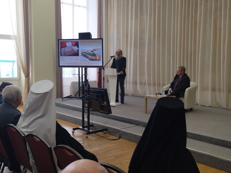 Иерей Петр (Гевурян) представил доклад на тему «Святитель Серафим Соболев в полемике против нравственной теории искупления. История вопроса», рассмотрев три теории в труде святителя: юридическую, органическую и нравственную, акцентируя внимание на последней.