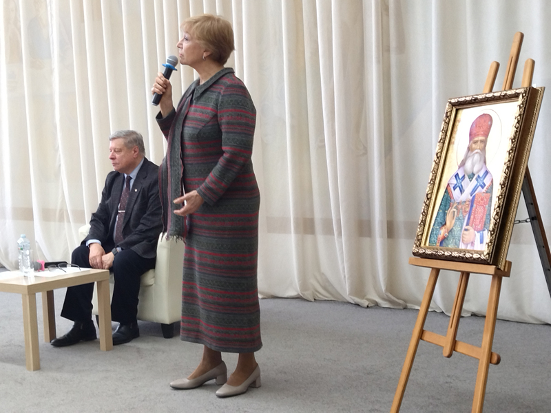 Директор областной библиотеки имени Горького, председатель Общественной палаты Рязанской области, заслуженный работник культуры РФ, почетный гражданин Рязанской области Наталья Николаевна Гришина, приветствуя высокое собрание, поблагодарила владыку Марка за активное взаимодействие с библиотекой, направленное на отстаивание идеалов веры и победу Русского Мира.