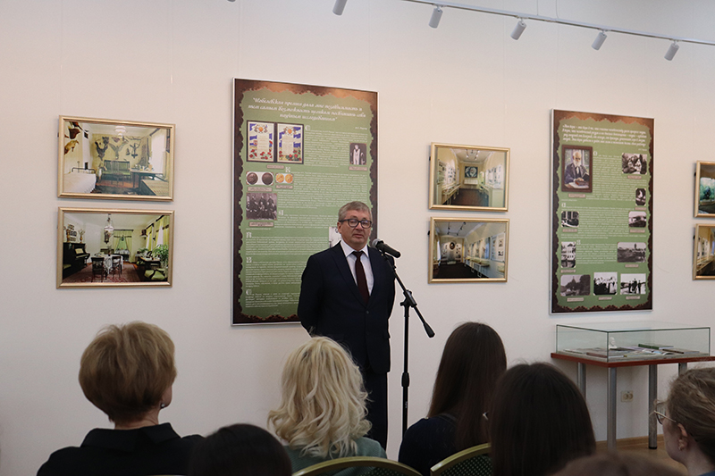 От медицинского университета перед гостями мероприятия выступил доктор медицинских наук, профессор, заведующий кафедрой нормальной физиологии с курсом психофизиологии Михаил Михайлович Лапкин, который особенно отметил редкие издания из фонда библиотеки, представляющие научный интерес и для современных исследователей.