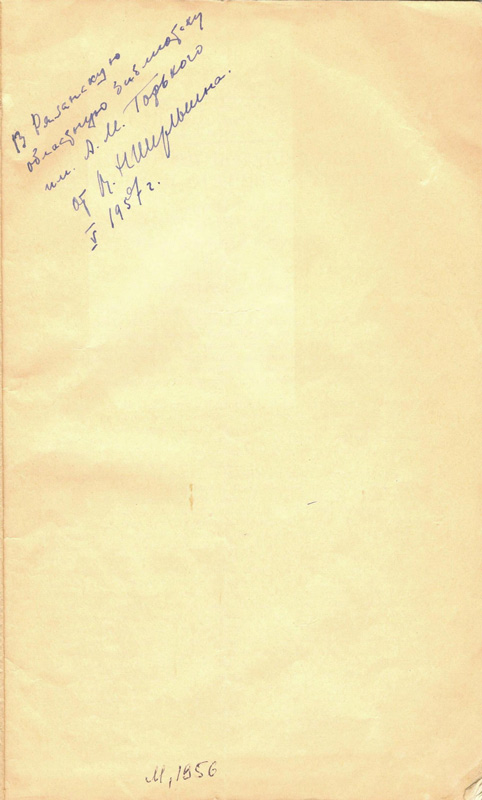 В фонде Рязанской библиотеки им. Горького есть книги В.Н. Шульгина – «Памятные встречи» (1958) и «Очерки жизни и творчества Н. Г. Чернышевского» (1956). Кроме того, у нас хранится бережно переплетенная его статья «Из истории поздних связей Герцена и Огарева с Россией» из сборника «Литературное наследство. Том 63: Герцен и Огарев» (1956). Статье присвоен инвентарный номер, и она перешла в разряд книг. На ней есть дарственная надпись: «В Рязанскую областную библиотеку им. А.М. Горького от В.Н. Шульгина. V. 1957 г.». Виктор Николаевич Шульгин являлся редактором книги И.М. Романова «Н.Г. Чернышевский в Вилюйском заточении», на ней он оставил такой автограф: «Рязанской областной библиотеке им. А.М. Горького от редактора. 1958 г. Москва».