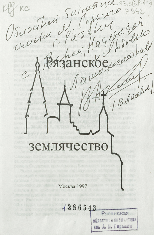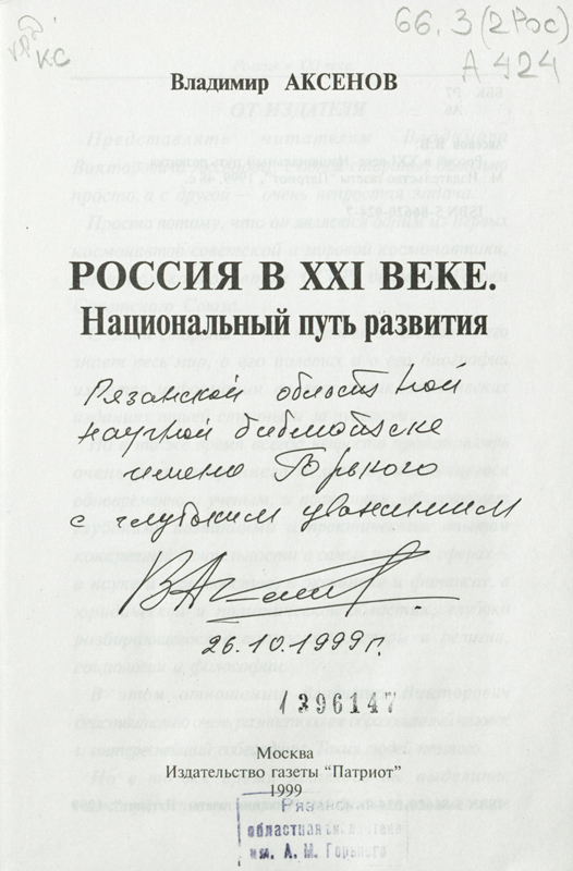 Аксенов Владимир Викторович / / Почетные граждане Рязанской области и города Рязани / РОУНБ им. Горького. – Рязань, 2009. – С.102-104.