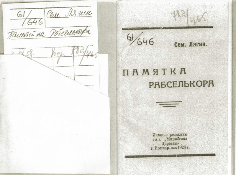 В апреле 1927 года в с. Аграфенина Пустынь на имя Семена Игнатьевича пришло письмо из газеты «Марийская деревня» г. Краснококшайска (с 1928 года – г. Йошкар-Ола) Марийской области, подписанное ответственным редактором издания: его приглашали «на службу с окладом около 100 руб. и плюс гонорар за собственные статьи». Семен Игнатьевич принял предложение и в течение двух лет работал секретарем этой газеты и публиковал в ней свои статьи. В 1928 году вышла из печати его брошюра «Памятка рабселькора». Возобновив свое членство во Всероссийском обществе крестьянских писателей (ВОКП), С.И. Лягин по поручению Центрального совета Общества предпринял попытку организовать в Йошкар-Оле Марийское отделение ВОКП. В июне 1929 года в Москве проходил I Всероссийский съезд крестьянских писателей. От Марийской автономной области было послано два делегата, одним из которых был С.И. Лягин, выступивший на съезде в прениях по докладу А.А. Субботина о массовой работе ВОКП. В апреле 1929 года Центральный совет Общества выслал Семену Игнатьевичу удостоверение на руководство литературным кружком, который он вел вплоть до своего отъезда из Йошкар-Олы.