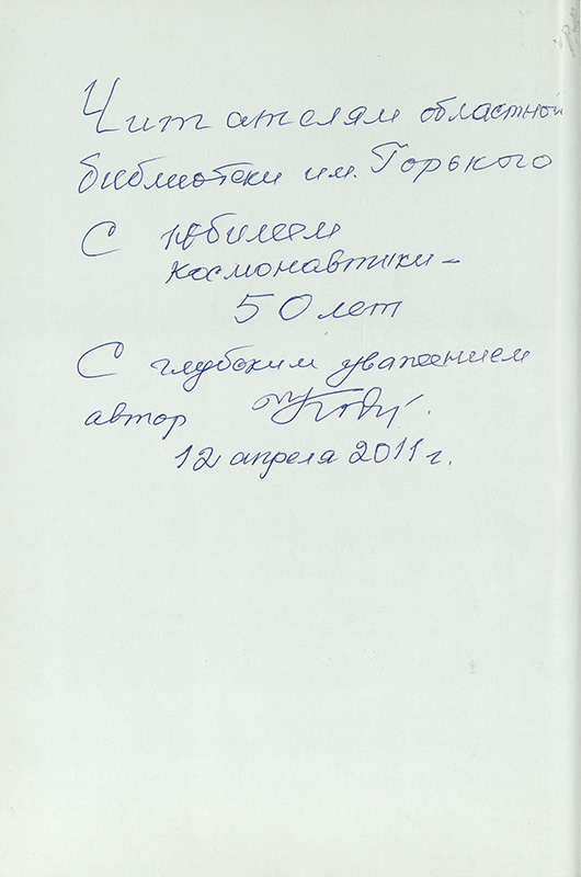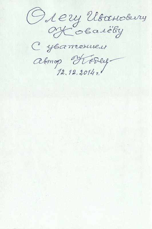 В двух экземплярах книги «Сыновья Великой победы. “Рязанское землячество” в Москве» (2014) автор А.М. Кодылев сделал надписи: «Читателям областной библиотеки имени Горького. С юбилеем космонавтики – 50 лет. С уважением, автор Кодылев 12 апреля 2011», а третий экземпляр адресовал «Олегу Ивановичу Ковалеву с уважением, автор Кодылев 12.12.2014». О.И. Ковалев, губернатор Рязанской области (2008–2017), передал в наш книжный фонд часть своей личной библиотеки.