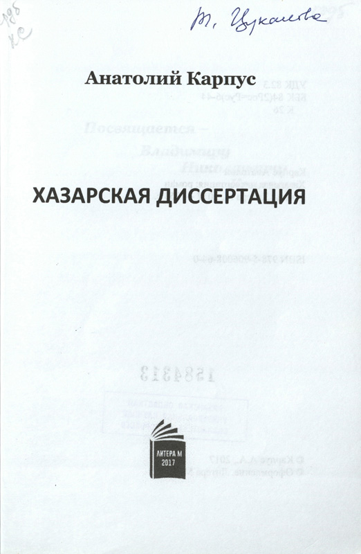 В «Коллекции автографов» «Горьковки» собраны десятки книг с автографами и владельческими надписями из личной библиотеки Т.Н. Цукановой. Среди них роман А. Карпуса «Хазарская диссертация» с дарственной надписью автора – поэта, прозаика, драматурга, члена литературной ассоциации «Переяславль», общественного деятеля и краеведа.