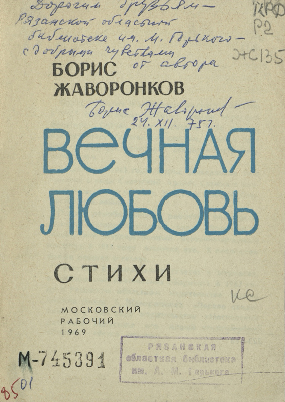 21 октября исполняется 95 лет Борису Ивановичу Жаворонкову – рязанскому поэту, заслуженному работнику культуры РФ, члену Союза журналистов РФ, почетному гражданину города Рязани.