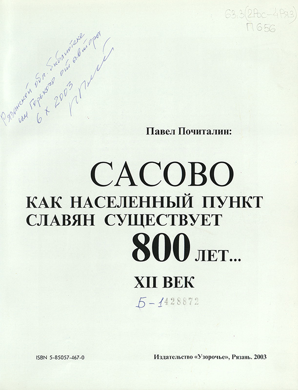 Сасовский историко-краеведческий музей, организованный под руководством Павла Алексеевича Почиталина, был открыт в 1990 г., и с тех пор он является культурно-просветительным и научно-исследовательским учреждением, местом притяжения общественности и популяризации краеведческих знаний на Рязанской земле.