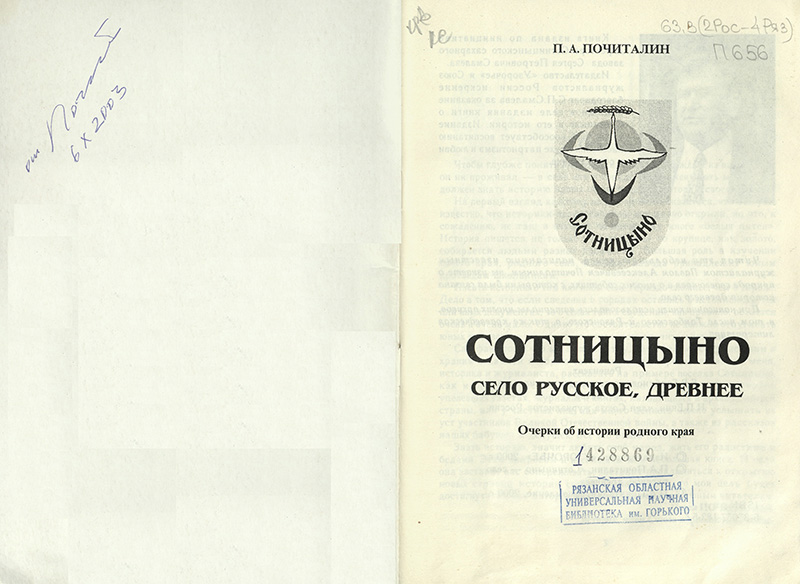В «Коллекции автографов» «Горьковки» хранятся четыре издания с автографами П. А. Почиталина. В книге «Понять неведомое: философские этюды, 1947–1997» – его дарственная надпись «Библиотеке имени Горького – от автора! 7 июля 1997 г.»; на титульном листе историко-литературного фотоальбома «Сасово как населённый пункт славян существует 800 лет... XII век» инскрипт: «Рязанской областной библиотеке имени Горького от автора 6.10.2003»; на второй странице обложки очерков «Сотницыно – село русское, древнее» – автограф и дата 6.10.2003; в книге «История сел и деревень Сасовской земли» – надпись: «Рязанской областной библиотеке от автора. 24 октября 2004».