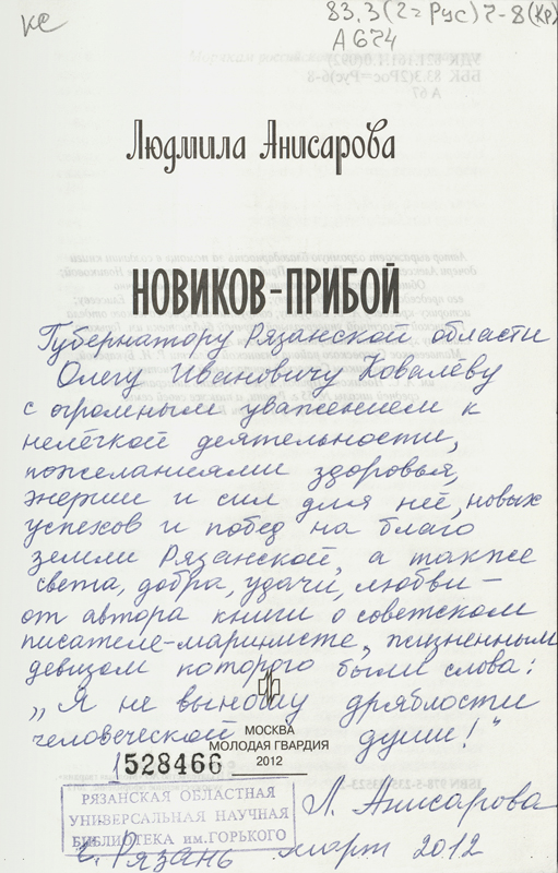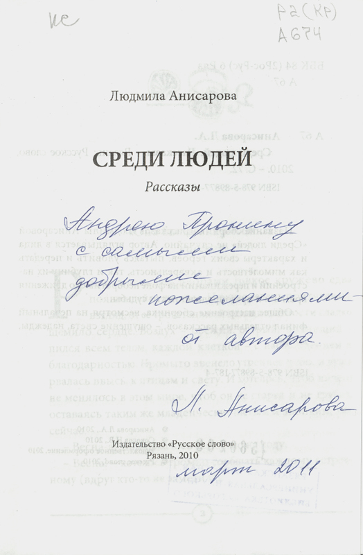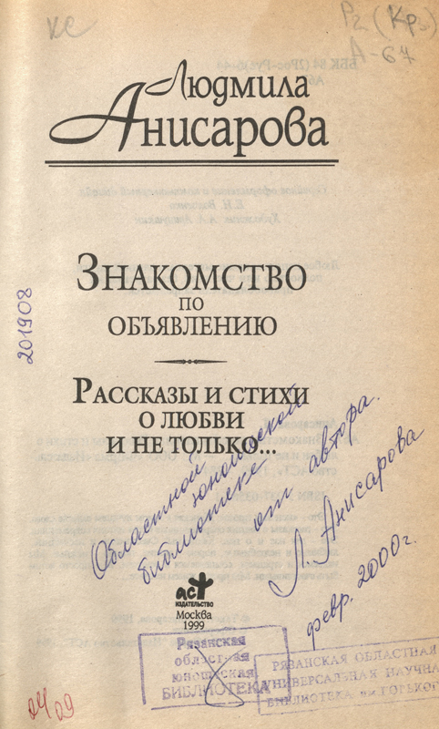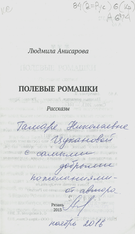 В «Коллекции автографов» Рязанской библиотеки имени Горького хранятся книги Людмилы Анисаровой с автографами автора.
