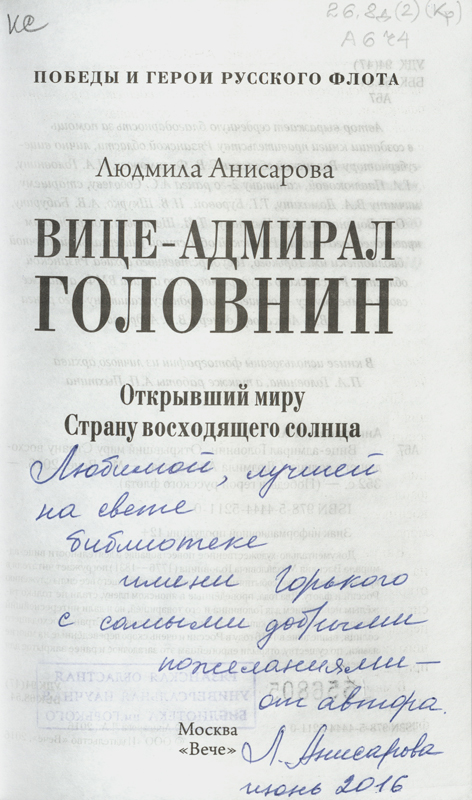 В 2016 году издано ее документально-художественное повествование «Вице-адмирал В.М. Головнин».