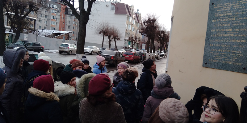 Три дня учащиеся семи рязанских школ и студенты медицинского колледжа совершали прогулки по Рязани, погружаясь в атмосферу первой половины XIX века. Светлана Евгеньевна рассказала, в каких домах жила семья Полонских. Провела к Николодворянскому храму, в котором Яков бывал со своими близкими на богослужениях, к зданиям Первой мужской гимназии, где он учился, и пансиону гимназии, располагавшемся в нынешнем здании художественного музея. Мы увидели дом, в котором Яков Петрович Полонский встречался с поэтом Василием Андреевичем Жуковским, который преподнес в дар Полонскому золотые часы; эта встреча стала решающей в литературной судьбе рязанского поэта.