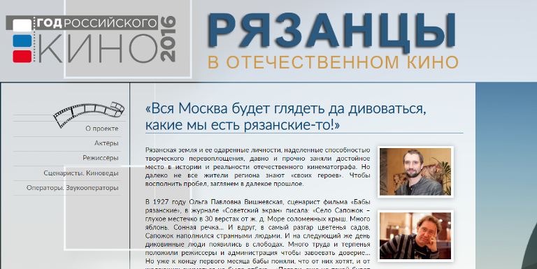 Вы сможете узнать, кто из рязанцев снялся в фильме «Легенда о Коловрате», какое отношение имеет к Рязани фильм «Москва слезам не верит», где родился король из фильма «Золушка» (вернее, актер, сыгравший эту роль), какое место в Рязанской области стало «земным раем» для кинорежиссера Андрея Тарковского.