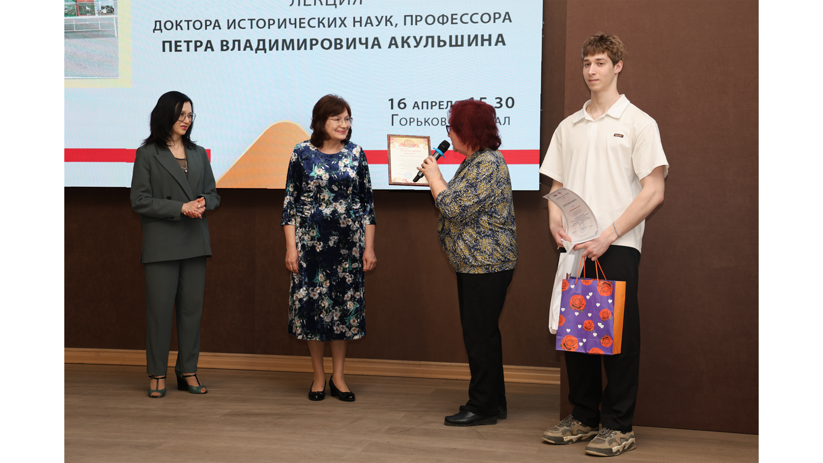 Заместитель директора Рязанской областной универсальной научной библиотеки имени Горького Алла Дуйшанбековна Полымова поздравила всех с юбилеем клуба и вручила грамоты и подарки преподавателям, которые много лет приходят вместе с ребятами на краеведческие занятия. Она выразила слова особой признательности учителям и преподавателям, понимающим важность знаний о родном крае.