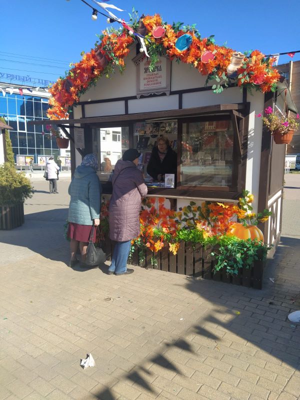 Книжная лавка библиотеки имени Горького участвует в ярмарке, открывшейся 30 сентября на площади Победы перед МКЦ.
