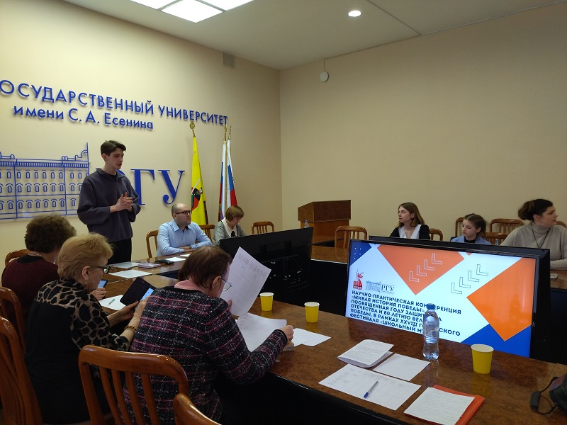 Экскурсии были представлены в виде презентаций и видеосюжетов, среди которых особенно яркими, насыщенными краеведческими фактами, раскрывающими потенциал школьных музеев, были видеоэкскурсия «Центр Рязани в годы Великой Отечественной войны», представленная учащимися школы № 7, и экскурсионный маршрут «Огнем войны опалены…» – об учителях и учениках, погибших в годы Великой Отечественной войны, подготовленный девятиклассницами гимназии № 2.