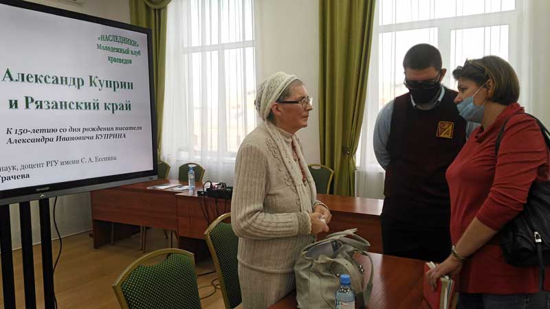 Перед «наследниками» выступила кандидат филологических наук, доцент Рязанского государственного университета имени С.А. Есенина И. В. Грачева. Она начала свою лекцию-исследование с вопроса: «Читали ли вы рассказы Куприна?», после чего повела свой рассказ о произведениях писателя, в которых упоминаются рязанские топонимы.