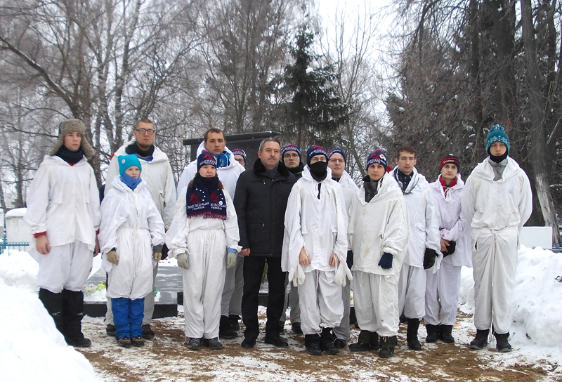 После торжественной части участники поставили корзину цветов к памятнику павшим воинам. Из Захарова лыжники отправились в Михайловский район, с участниками похода до села Поярково прошла и группа школьников Захаровской средней школы №1.