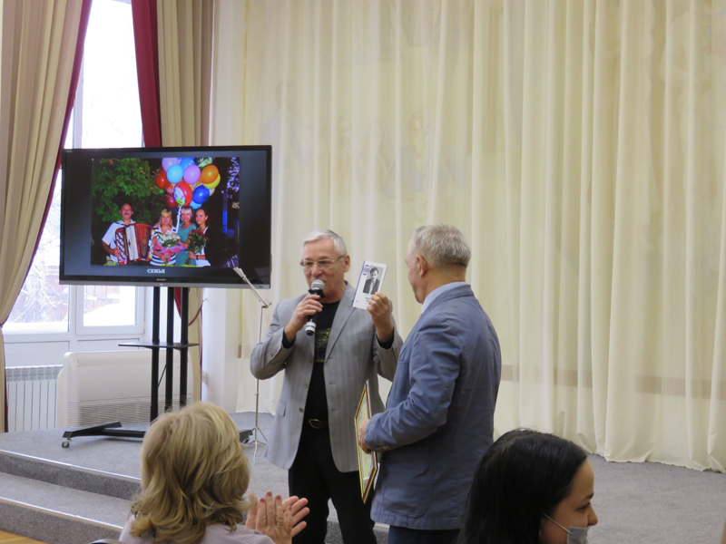 Ведущая вечера Татьяна Гусарова познакомила публику со многими гранями творческой деятельности юбиляра, важными вехами его биографии, перемежая рассказ поздравлениями гостей и музыкальными номерами. Цветы, подарки, добрые пожелания создавали удивительно теплую, праздничную атмосферу.