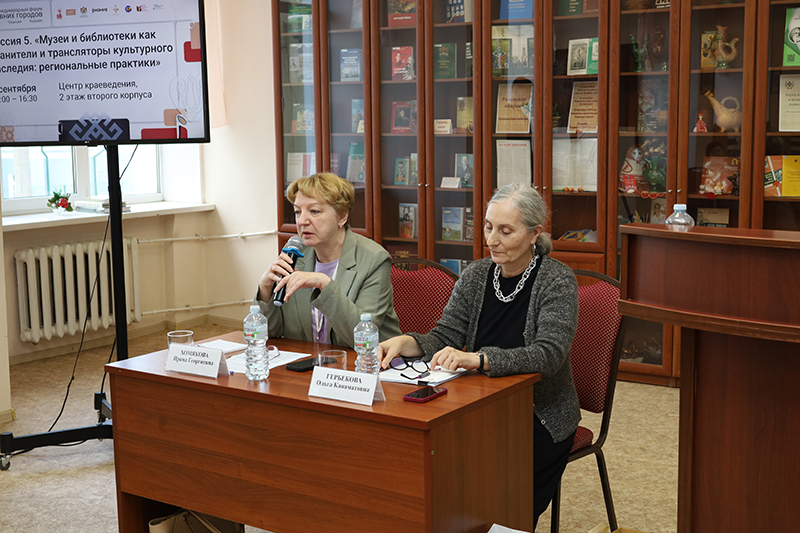 Модераторами выступили заведующая центром редких и ценных изданий Рязанской областной универсальной научной библиотеки имени Горького, заслуженный работник культуры РФ Ольга Канаматовна Гербекова и главный научный сотрудник отдела организационно-методической и образовательной деятельности РОУНБ имени Горького, кандидат педагогических наук, доцент Ирина Георгиевна Хомякова.