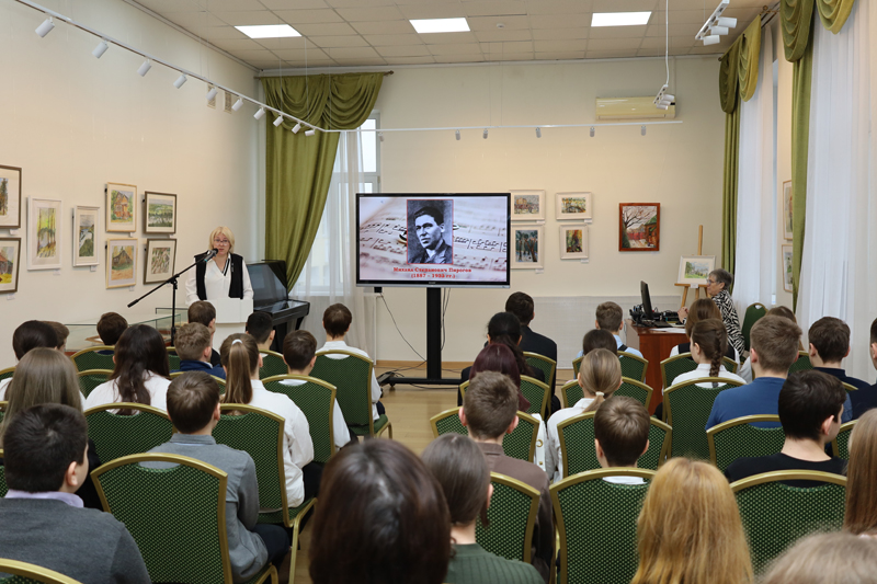 Дети с большим вниманием прослушали рассказ об уникальной семье братьев-певцов Пироговых, о музыкальной династии Виноградовых-Озеровых, узнали о том, что известную песню «Смуглянка» написал наш земляк композитор А.Г. Новиков, а песню «На побывку едет молодой моряк» – композитор А.П. Аверкин. Особое внимание было уделено, конечно же, создателю гимна СССР и России, уроженцу с. Плахино Захаровского района А.В. Александрову.