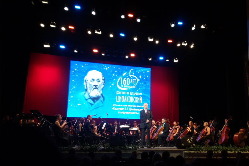 27 сентября в Рязанской филармонии состоялось торжественное открытие конференции. Это был яркий, запоминающийся праздник. Рязанский губернаторский симфонический оркестр и актеры скопинского театра «Предел» показали зрителям замечательный литературно-музыкальный спектакль, где отрывки из дневников и автобиографии самого Циолковского плавно переходили в сцены из его жизни, а затем в мощные аккорды музыки и слайды видеоряда.