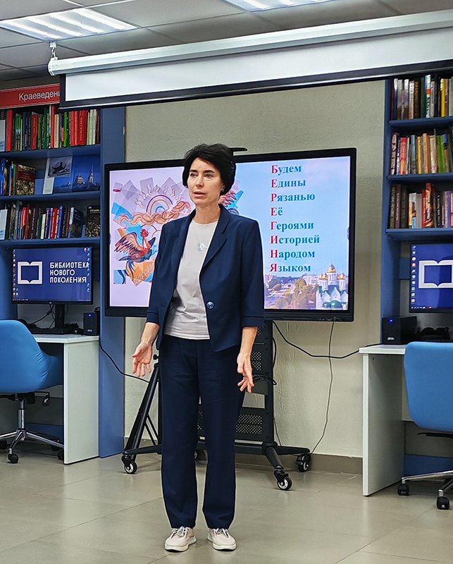 Под музыкальное сопровождение гусляра приглашенные стали участниками исторического экскурса к истокам Древней Руси. Затем выступила заместитель министра культуры Рязанской области Дарья Стерлигова. Она отметила, что благодаря успешной реализации нацпроектов «Культура» и «Семья» в регионе открылось уже 28 библиотек нового поколения.